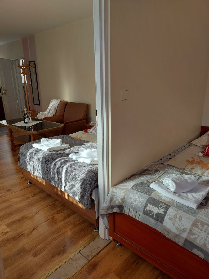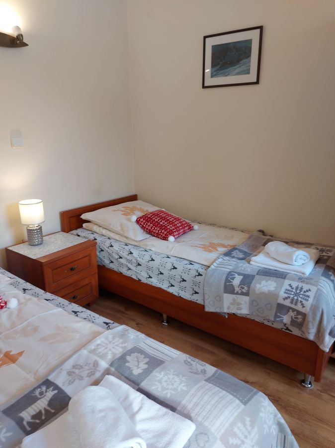 Apartament 2-pokojowy o powierzchni 40m2 posiada łóżko małżeńskie i 2 łóżka jednoosobowe.