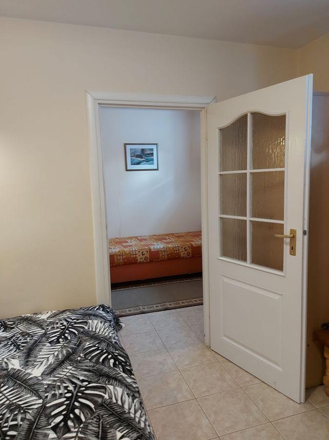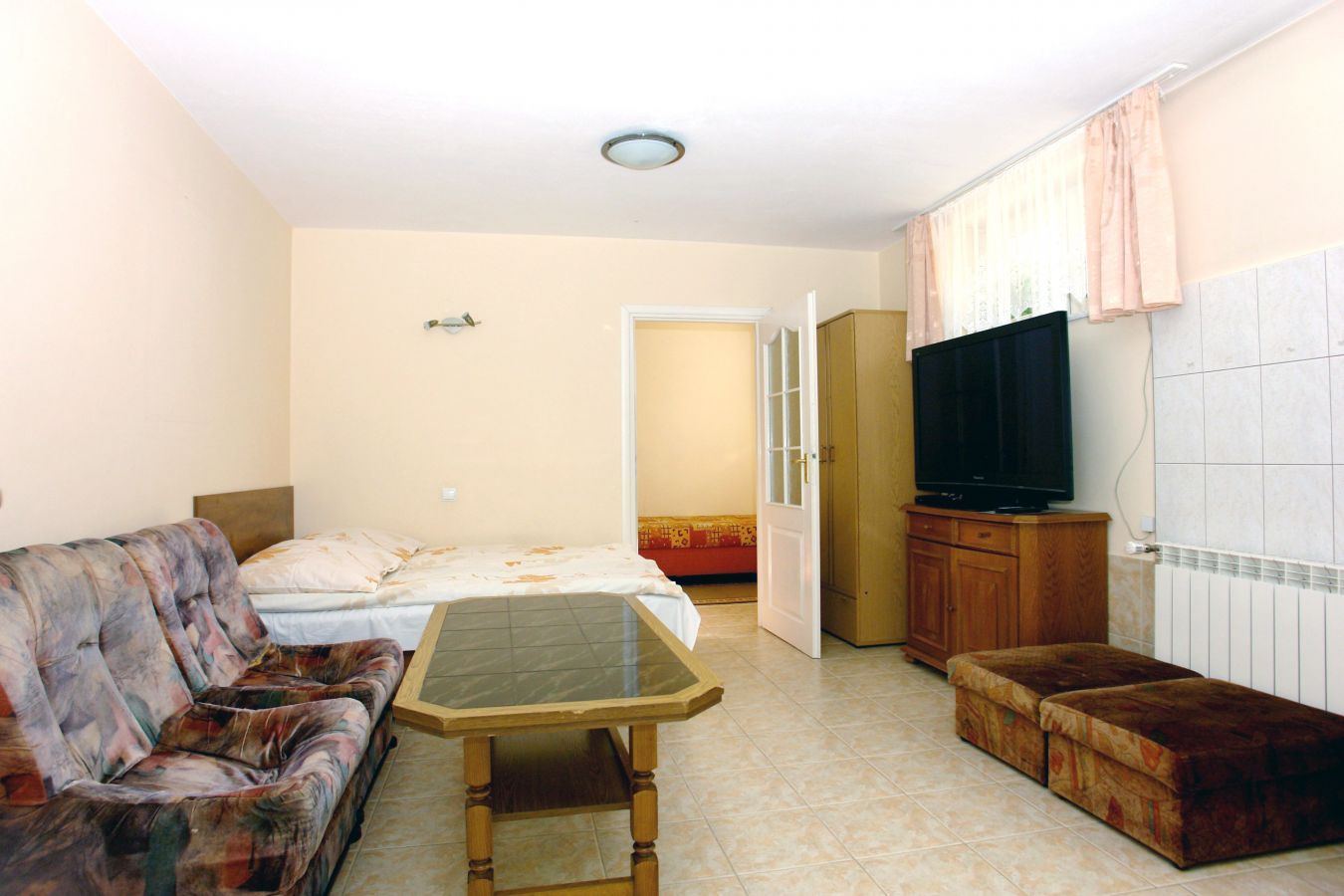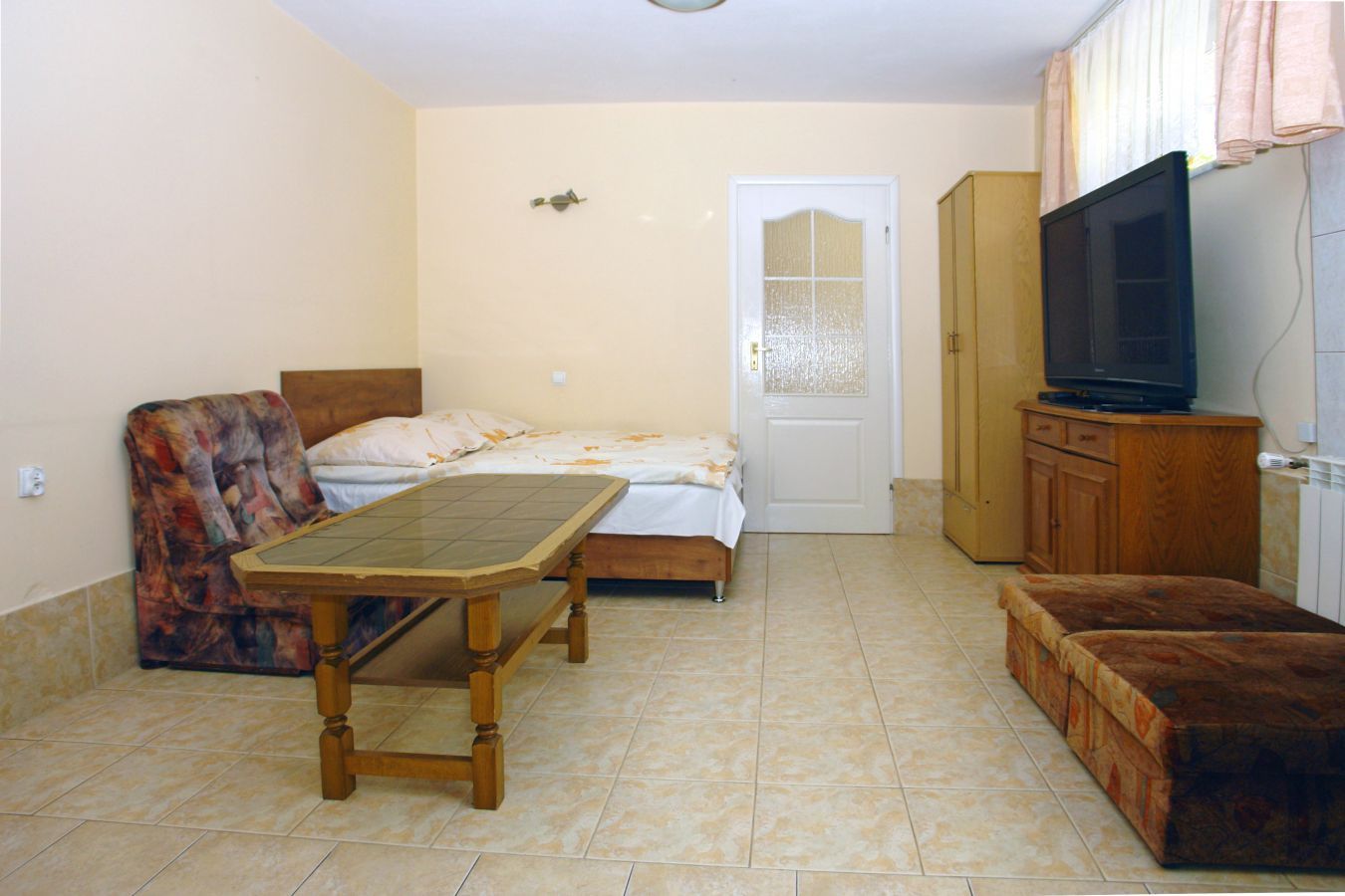 Apartament składa się z części dziennej z łożem małżeńskim (materac lateksowy ), do której przylega z jednej strony część sypialna ( 3 łóżka jedoosobowe), a z drugiej aneks kuchenny i łazienka . Nie posiada balkonu gdyż jest położony w niskim parterze (suteryna). Standard jest ten sam co w pozostałych apartamentach, ale ze względu na położenie jest tańszy.