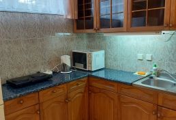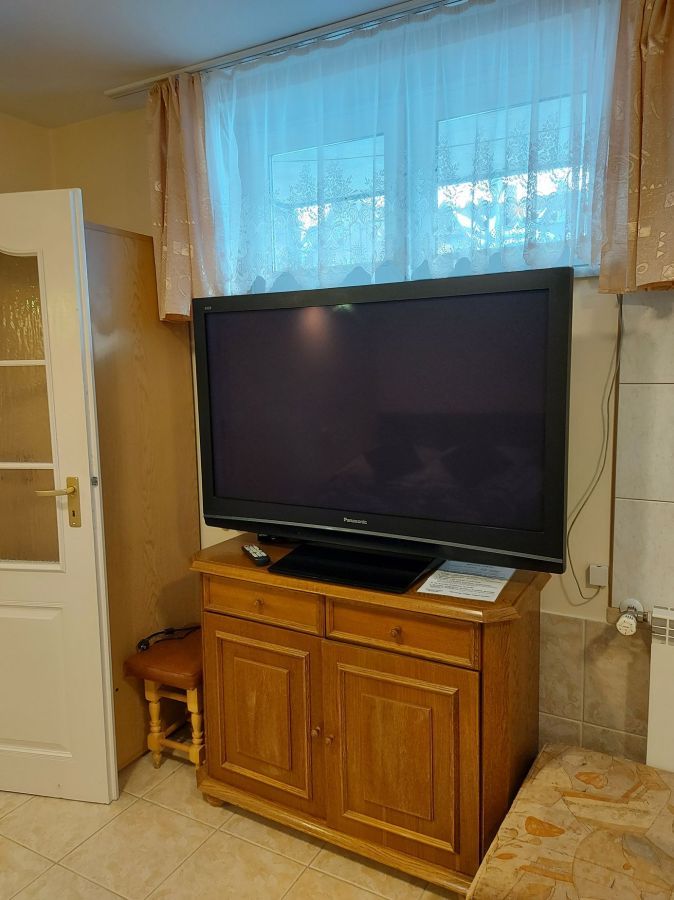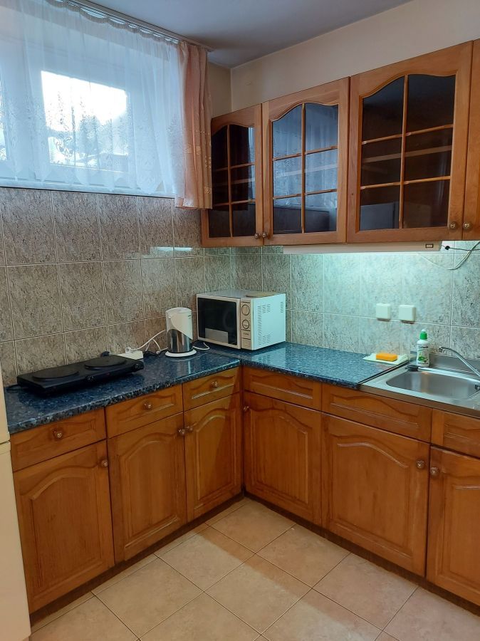| Wyposażenie | aneks kuchenny z lodówką, kuchenką mikrofalową, zlewozmywak, czajnik bezprzewodowy, ekspres do kawy, kuchenka dwupalnikowa elektryczna, zestaw naczyń, łazienka z kabiną prysznicową, ubikacją i umywalką (gorąca woda całą dobę) + ręczniki, telewizor, dostęp do internetu WiFI. |