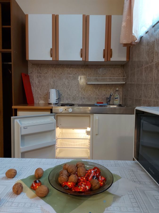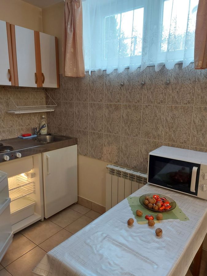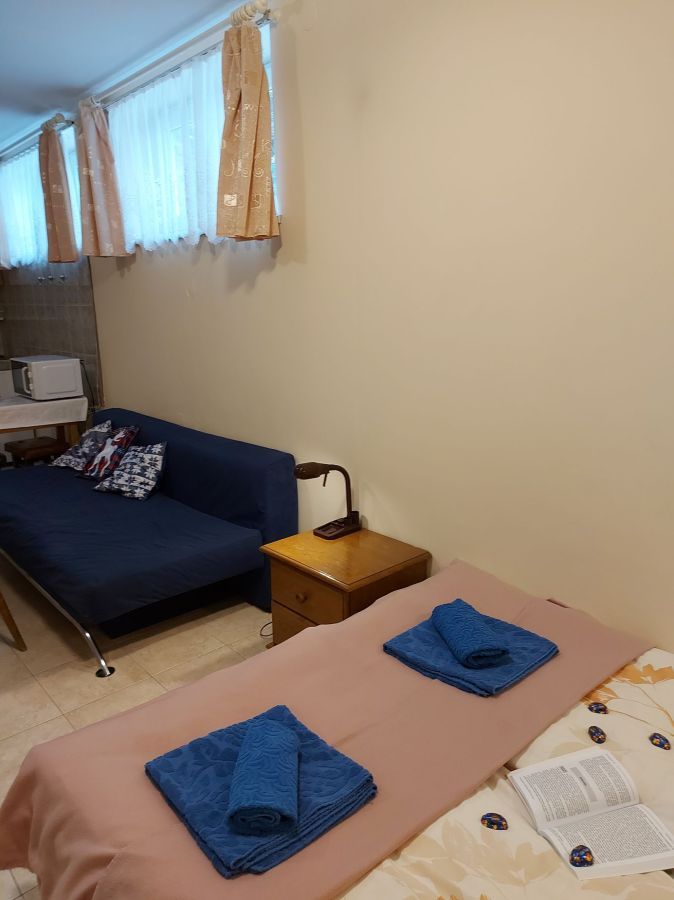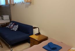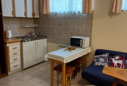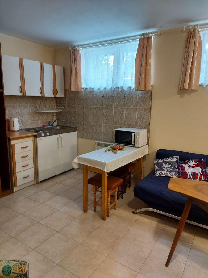 | Wyposażenie | aneks kuchenny z lodówką, kuchenką mikrofalową, zlewozmywak, czajnik bezprzewodowy, ekspres do kawy, kuchenka dwupalnikowa elektryczna, zestaw naczyń, łazienka z kabiną prysznicową, ubikacją i umywalką (gorąca woda całą dobę) + ręczniki, telewizor, dostęp do internetu WiFI. |