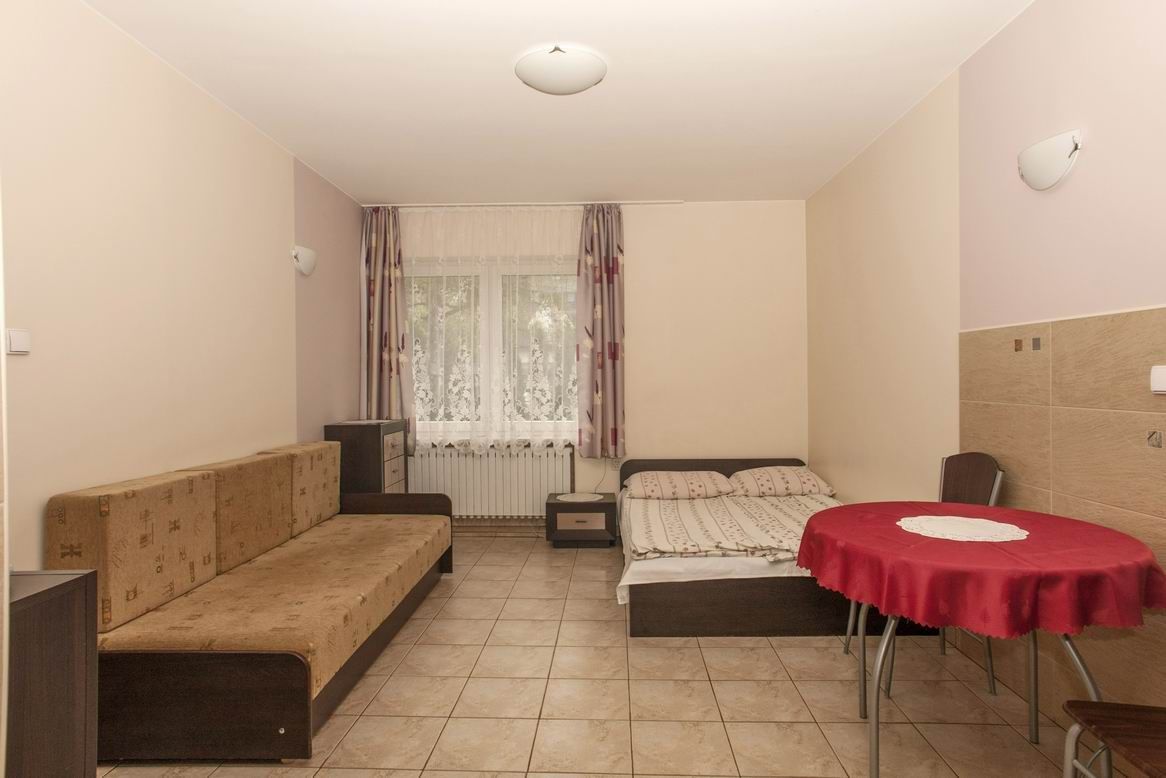 Apartament 1-pokojowy o powierzchni 29m2 posiada łóżko małżeńskie i łóżko jednoosobowe.
