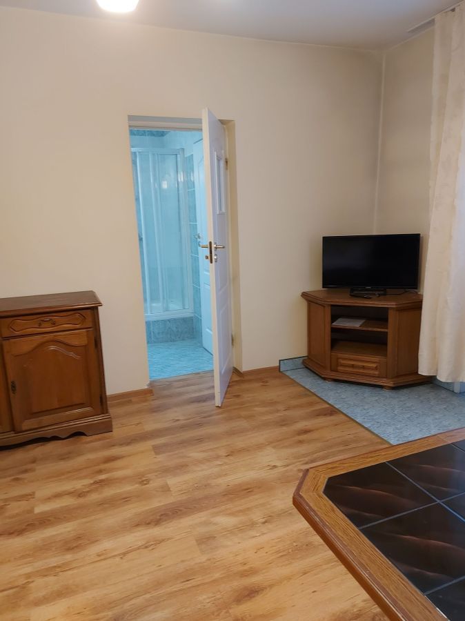 | Wyposażenie | aneks kuchenny z lodówką, kuchenką mikrofalową, zlewozmywak, czajnik bezprzewodowy, ekspres do kawy, kuchenka dwupalnikowa elektryczna, zestaw naczyń, łazienka z kabiną prysznicową, ubikacją i umywalką (gorąca woda całą dobę) + ręczniki, telewizor, dostęp do internetu WiFI. |