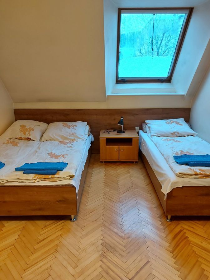 Całe piętro w domu jednorodzinnym. Powierzchnia 65m2. 2 pokoje 3-osobowe po 20m2.